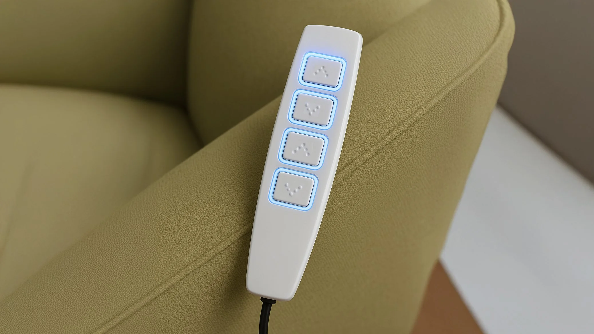 Artemisa is reinforced by a heavy-duty steel power mechanism engineered for durability and smooth motion. The power control panel provides effortless adjustment of both the back and footrest, allowing for customized comfort in any position.